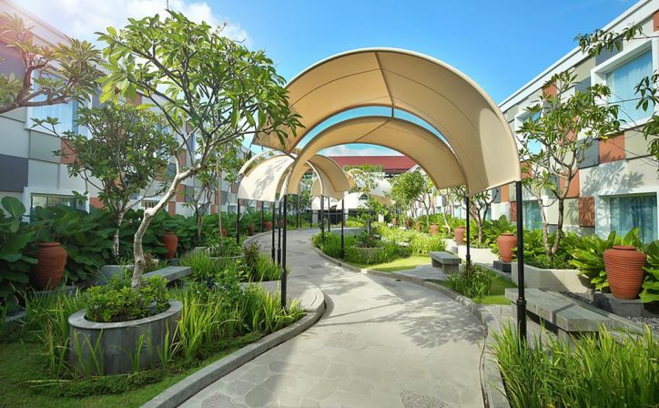 Make a stop at the convenient Novotel Bali Ngurah Rai Airport Hotel which provides 4-star facilities just few minute`s walk away from the terminals. Direct access to departure halls means stress less layovers, while cutting-edge technology and free WIFI is ideal for business travelers who want to work efficiently until their next take-off. Our Hotel offers full services that allow you to organize seminars and business meetings, or simply just to relax. Get on board for a comfortable stay at Novotel.