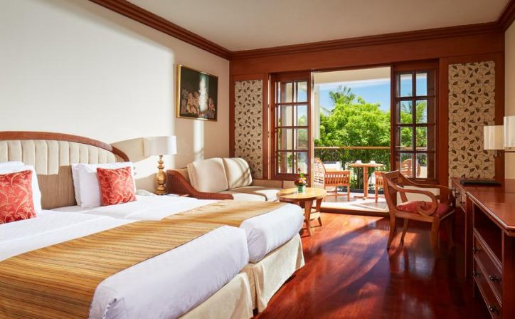 Escape from your daily routine in true Ayodya style in a spacious deluxe room overlooking lush tropical gardens or the shimmering Indian Ocean. Enjoy generous 48 sqm interiors, designed in subtle tones with timber fittings, traditional Balinese artworks, a private outdoor balcony, and thoughtfully curated amenities. The comfortable bedroom and contemporary marble bathroom are air-conditioned and can be appointed with a king-size bed or two twin-size beds.- Bed Type: King Bed / Twin Bed - Sleeps: 2 adults & 2 children (under 12 years old) - View: Garden view or Lagoon view |