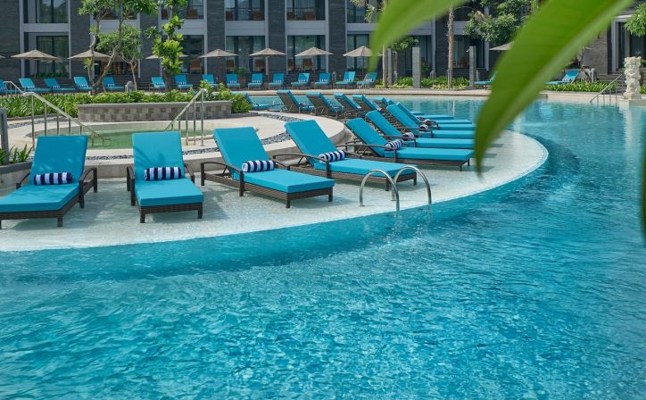 Relax in our well-appointed rooms, which offer marble bathrooms, free Wi-Fi, mini-bars and balconies with garden or pool views. Upgrade to a suite to enjoy large living areas, walk-in closets and oversized tubs. In addition to our hotel beach club and free shuttle service, the resort features a stunning lagoon pool, children`s pool, modern gym, a day spa, five superb dining outlets and free parking. Those planning weddings or conferences in Bali will adore our sophisticated indoor venues, inspiring beach and courtyard spaces. The hotel is near Bali Nusa Dua Convention Center, Kuta Beach and Waterbom Bali. We are also an easy drive from Uluwatu Temple and Tanah Lot Temple. We look forward to helping you create lasting memories at Courtyard Bali Nusa Dua Resort.