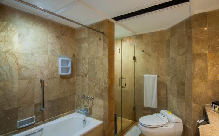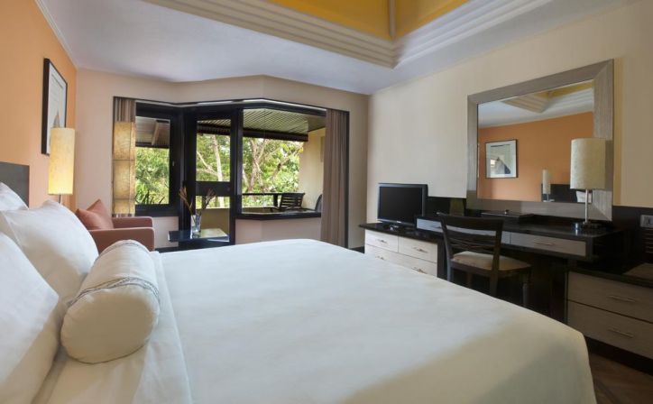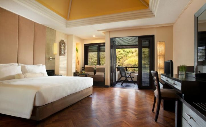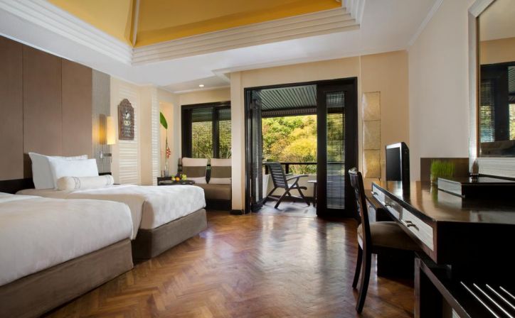 Spacious 484 sq.ft. (45 sqm) uniquely designed room, featuring 1 king size bed, private balcony with tropical garden view, LCD TV, free high-speed Internet and WIFI, mini bar, double sofa and coffee table, safety box and tea/coffee making facilities.- Room Size : 45 sqm - Bed Type : Twin Bed / King Bed - Sleeps : 2 Adults & 2 Kids (under 12 years old) |